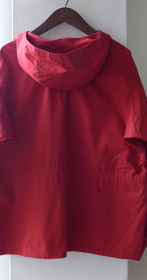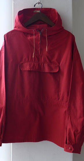 1960年代頃のイタリア製アノラックパーカです。画像でも分かると思いますが、良い感じの赤で、良い感じの生地感です。オールコットンの赤アノラックなんてもう暫く見てなかったですね。生地は張りのある平織りのコットン。めちゃめちゃ格好良い一着だと思います。