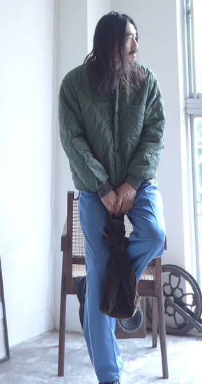 1972年のCWU-9/Pキルティングライナージャケットです。2000年代まで作られた名品の名品。数あるライナーの中でもユーティリティー感の強いアイテムで、そこがまた格好いいんですよね。私も大好きなアイテムで、上下で持っています。着こなし方にもよりますが、セットアップで着ても結構格好いいです。特にゆるめなスタイリングが好きな人にはお勧めです(サイズがゆるいと言う意味ではなく)。