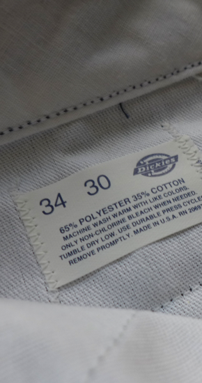 普通体型の日本人男性にぴったりなサイズ。ウエストが後から調整出来るように、ヒップのセンターが余分に織られている古いディティールも特徴的です。このディティールを持つ年代までが本物のディッキーズと呼べるのかなと。そしてデッドストックで手に入るのももう稀です。小さいサイズは出てくると思いますが、このサイズは皆無でしょう。一本は持っておいてください。