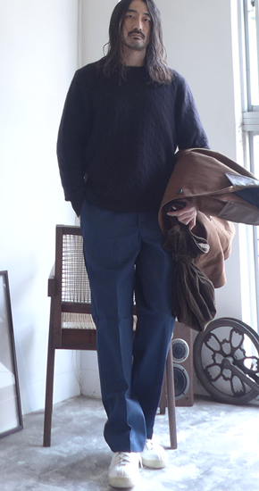 普段国内ブランド物でLサイズを着用しています。普段ヴィンテージのデニムパンツなどでW34を着用しておりますが、こちらのパンツに関してもちょうどよく履けます。